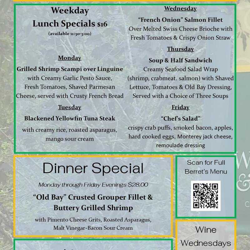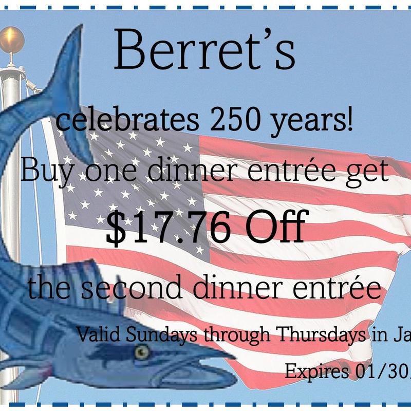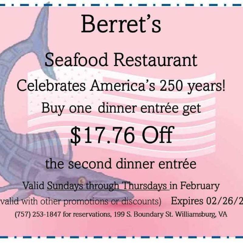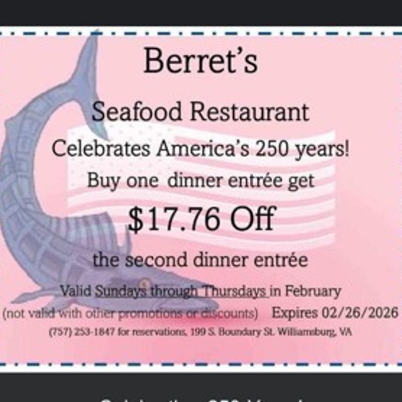 Since 1983, Berret’s Seafood Restaurant has offered two dining options, each with their own character. Inside dining, which used to be a gas station, or outside under the Taphouse Grill overlooking the William & Mary. We are located in Merchants Square, one block from the Historic Area of Colonial Williamsburg and across from the College of William & Mary.